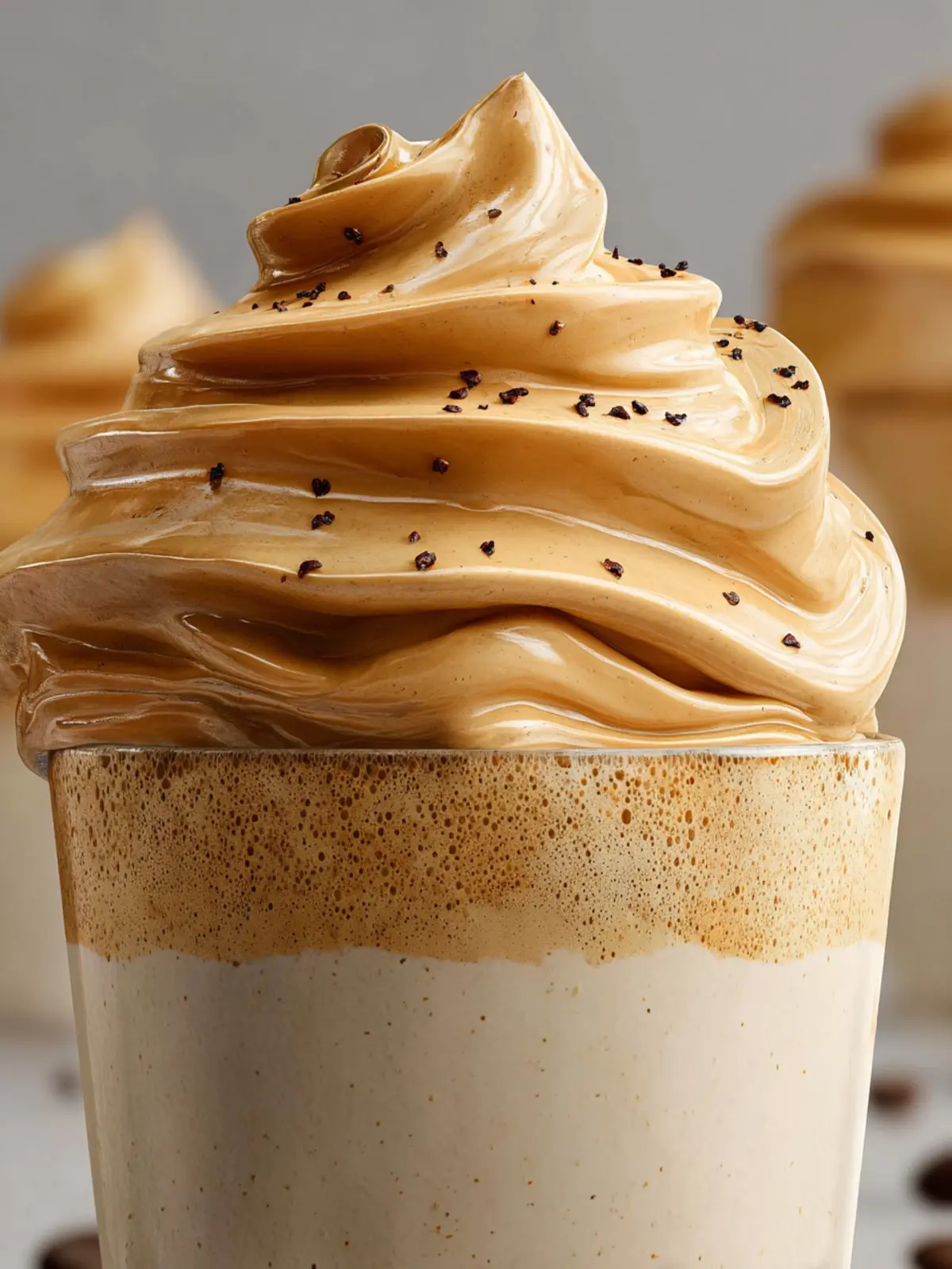 4. Carefully scoop out the whipped coffee topping into the two glasses and serve immediately.